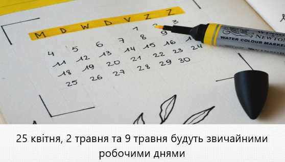 25 квітня, 2 травня та 9 травня будуть звичайними робочими днями