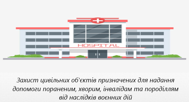 Захист цивільних об'єктів призначених для надання допомоги пораненим, хворим, інвалідам та породіллям від наслідків воєнних дій